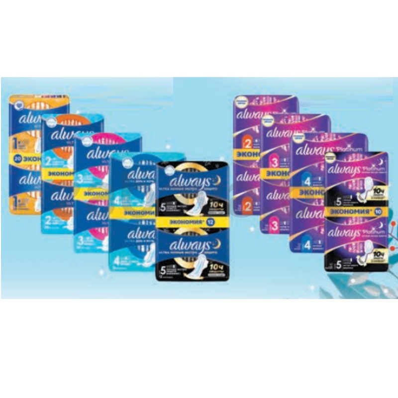 - Прокладки Always Ultra или Platinum, в ассорт.