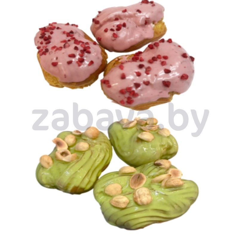 Пирожное заварное «Малина-Баблгам» или «Фисташка-Лесной орех», 1 кг в Санта