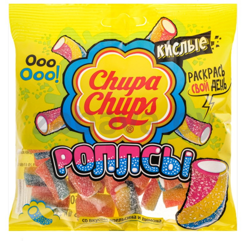 Мармелад Chupa Chups, жеват., роллсы, апельсин-лимон, 150 г в Евроопт