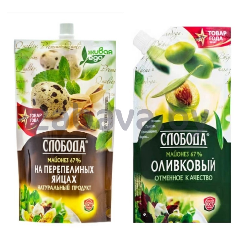 - Майонез «Слобода», оливковый или на перепел. яйцах, 67%, 375 мл/400 г