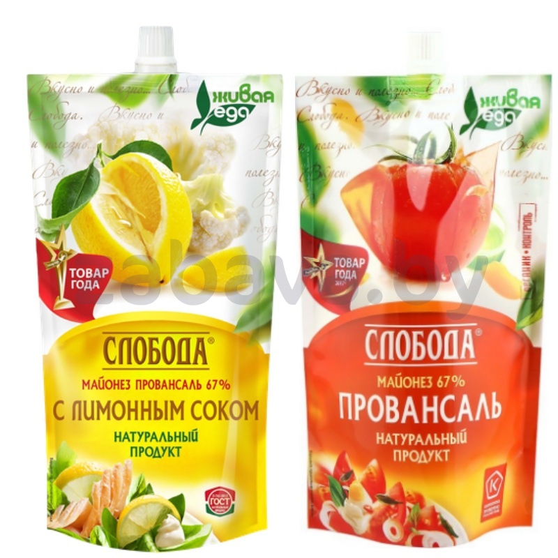 - Майонез «Слобода», провансаль классич. или с соком лимона, 67%, 375 г/400 мл