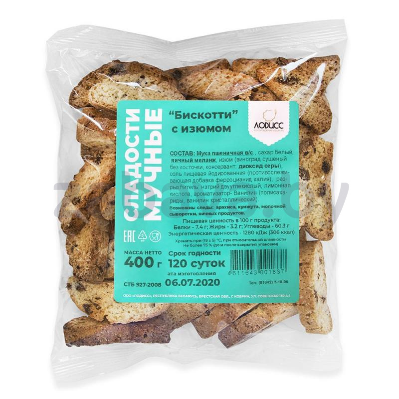 - Сладости «Бискотти», 400 г, с изюмом/дробсами