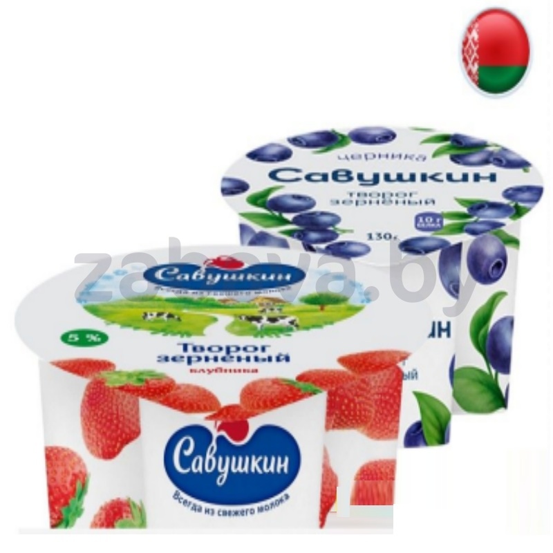- Творог зерненый «Савушкин», клубника или черника, 130 г